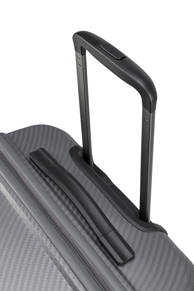 Säädettävä vetokahva sekä kestävä kantokahva laukun päällä ja sivulla.