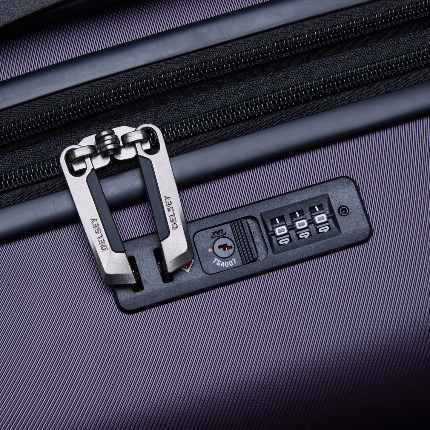 Integroitu TSA-koodilukko. Huomaa, että avainta ei toimiteta mukana, sillä tätä yleisavainta saa käyttää vain tulliviranomaiset.