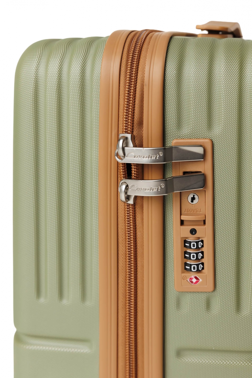 Integroitu kolminumeroinen TSA-yhdistelmälukko. Huomaa, että avain saa olla vain tulliviranomaisten hallussa.