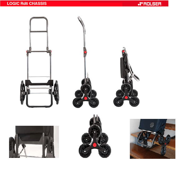 Rolser RD6 Logic -ostoskärry on rakennettu sinulle, joka haluaa helposti nousta portaista ja jalkakäytäviltä pienellä voimalla. Ostoskärryssä on 6-pyöräinen rakenne, joka kiipeää helposti portaita suurilla kuormilla. RD6 Logic -sovelluksella minimoidaan jalka-, olkapää- ja selkäongelmat ja olet erittäin suosittu asunnoissa ilman hissiä asuvien keskuudessa. Tee ruoan ostamisesta, pesemisestä tai muiden raskaiden kuormien vetämisestä helpompaa kuin koskaan.