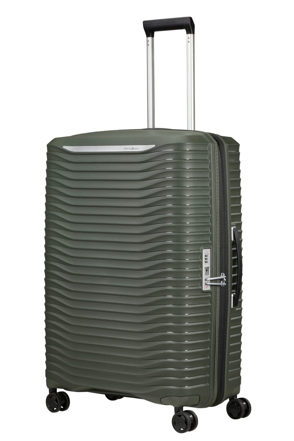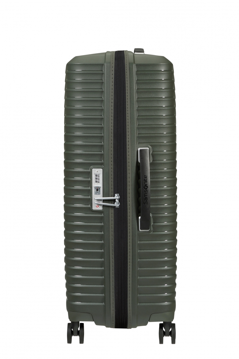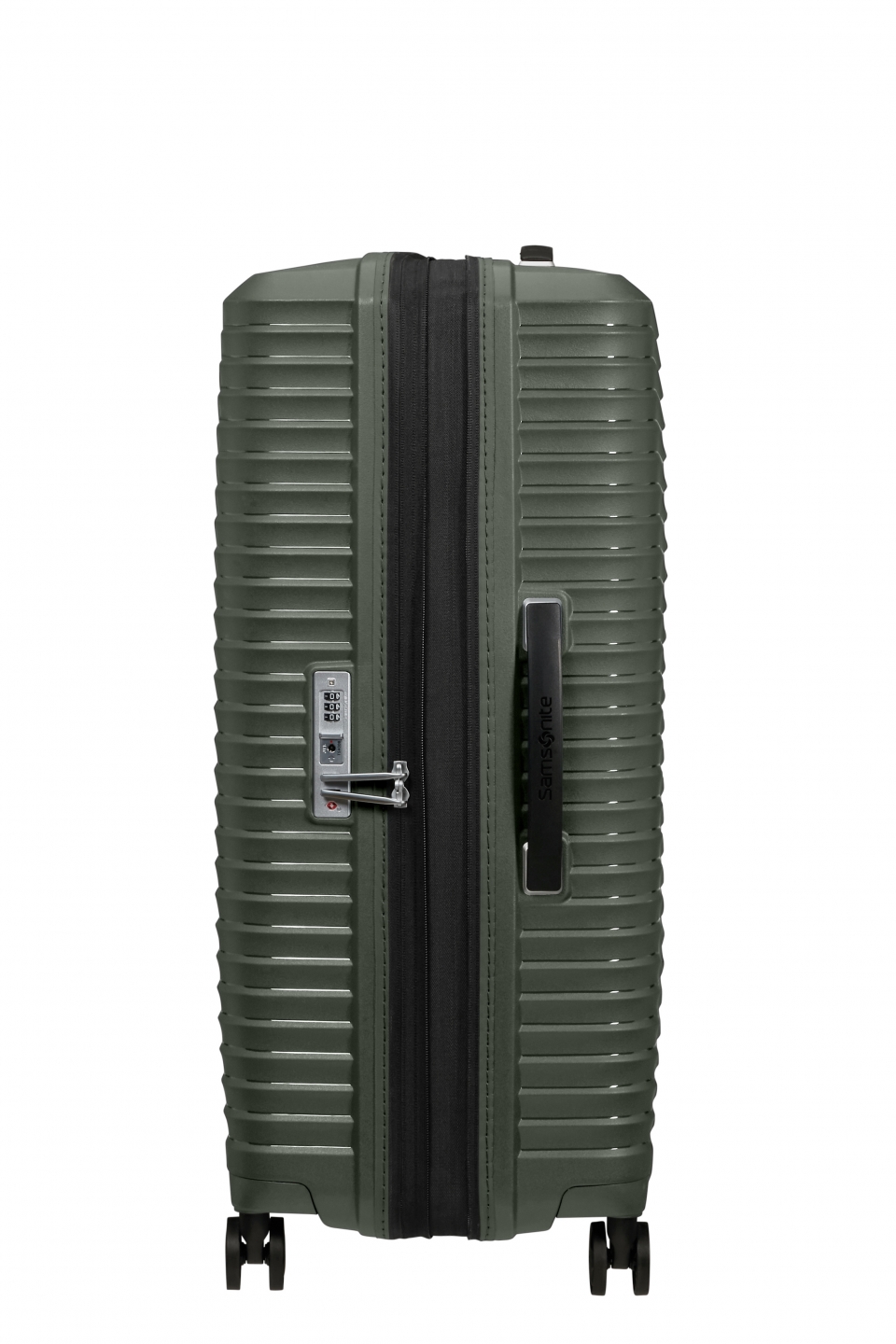 Samsonite Upscape -matkalaukussa on vahva, kestävä ja naarmuuntumaton kuori. Upscape on ympäristöystävällinen tuote, joka on valmistettu kierrätetyistä materiaaleista. Sen kevyt paino ja hyvin suunniteltu rakenne tekevät matkustamisesta erittäin mukavaa. Lisäksi laukku on laajennettavissa, mikä tekee siitä joustavan sekä lyhyille että pidemmille matkoille. Integroitu, sisäänvedettävä nimikyltti, jolla voit helposti merkitä laukkusi.